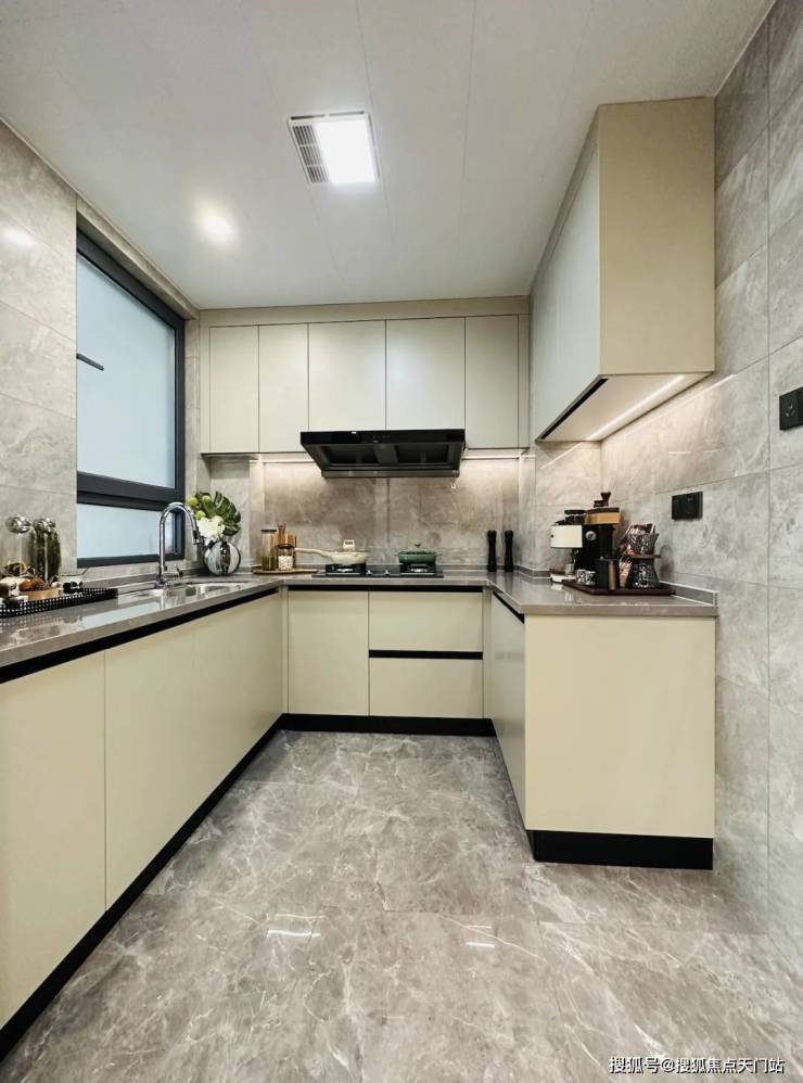 餐客厅一体化的规划, 高效合理有利地势用了空间,还有助于增进家人世的情感沟通。u型厨房的规划,动线合理!